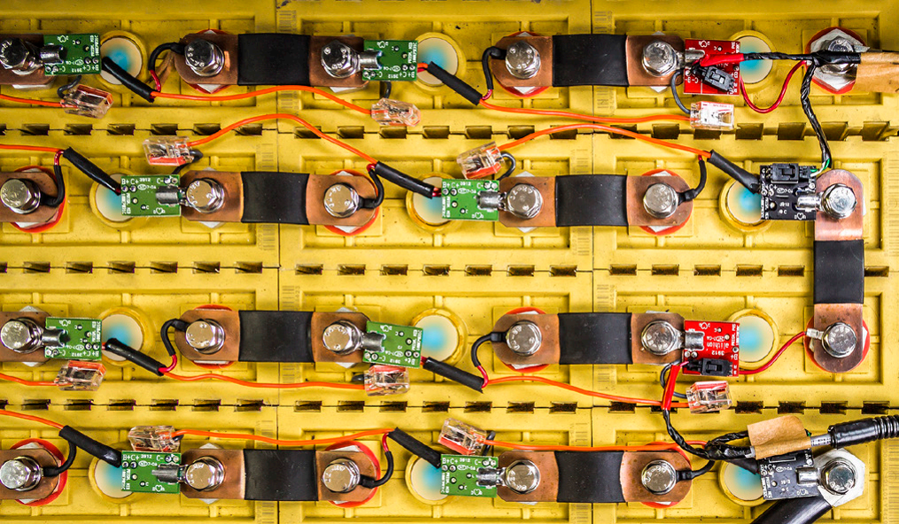 03 柱狀電池充放電測量 ▲ 8支并排的18650電池組用于測試