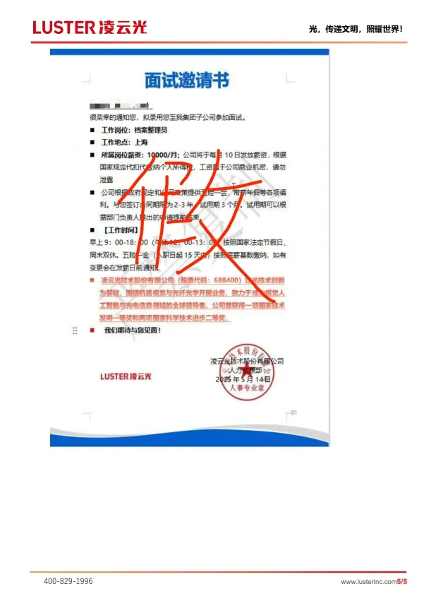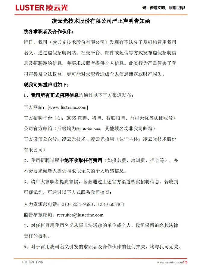 凌云光技術(shù)股份有限公司嚴(yán)正聲明告知函