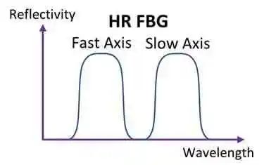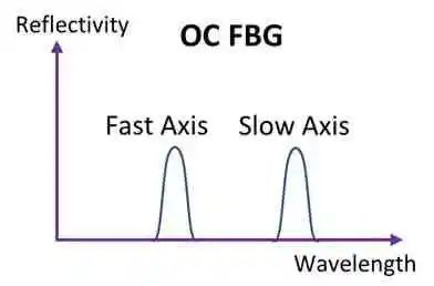 因此,寫入保偏光纖的FBG具有兩個反射峰,其波長分別對應于慢軸和快軸??燧S和慢軸峰值之間的波長差異取決于光纖雙折射,如圖2。