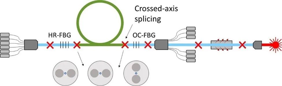 圖4. 使用FBG光柵對和交叉軸熔接技術的線偏振光纖激光器設計