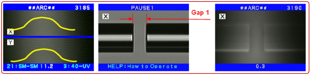 1.測(cè)量電弧中心 2.測(cè)量光纖端面棱角間隔 3.低功率電弧加熱結(jié)束