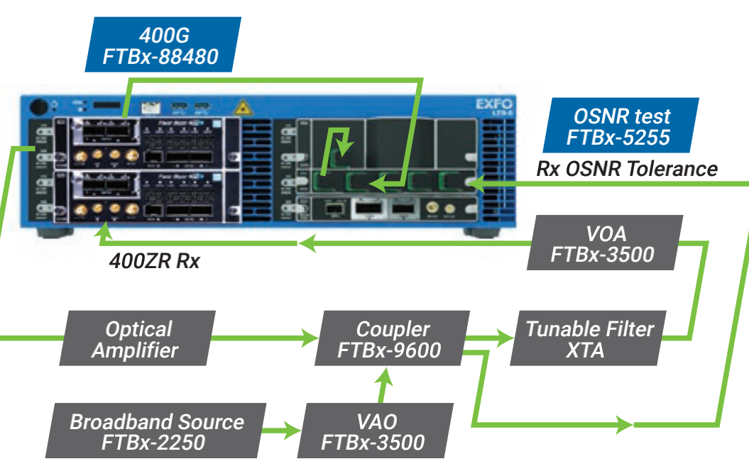 對400G測試解決方案的需求已經(jīng)從現(xiàn)場擴(kuò)展到了實(shí)驗(yàn)室和生產(chǎn)車間。將 FTBx-88480與其它一流的測試工具(如OSA、光開關(guān)和可變衰減器)結(jié) 合起來,提供一整套高級測試功能。