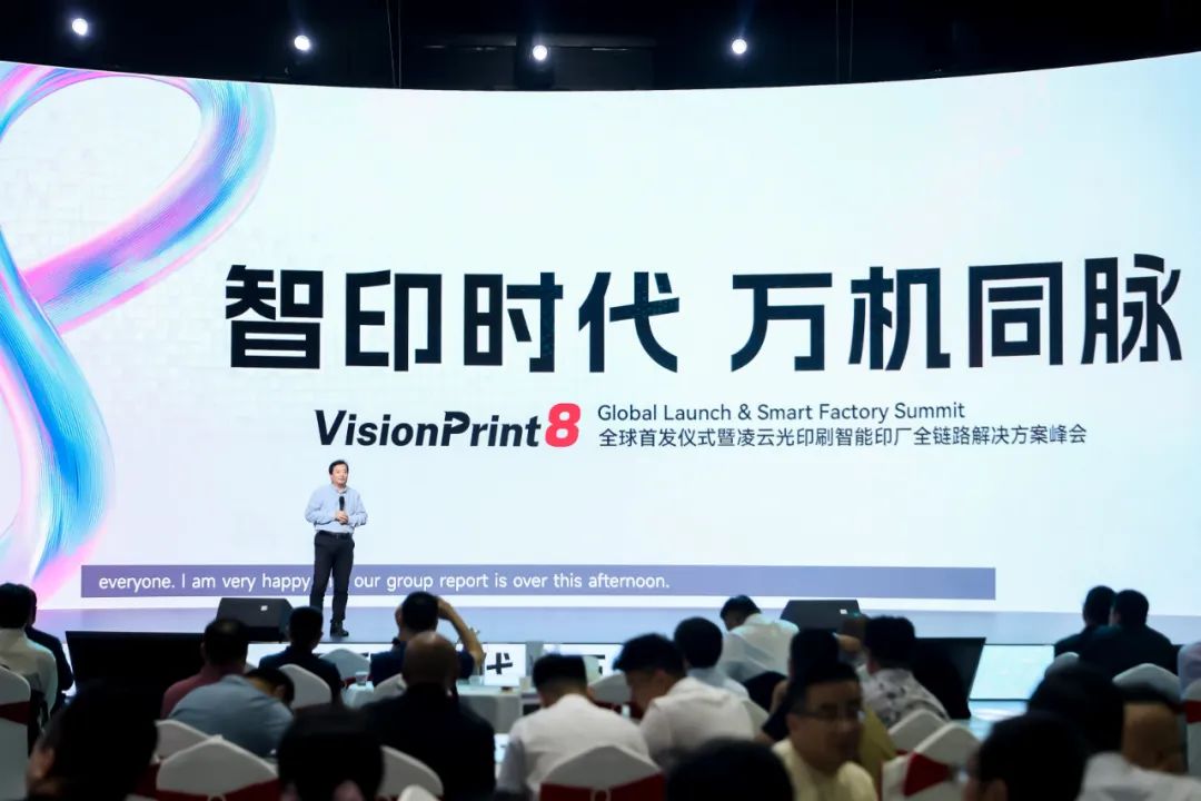 峰會上,來自海內外200多位客戶及合作伙伴現(xiàn)場見證VP8全球首發(fā)儀式,共同探討智能印廠的智慧升級,全鏈路解決方案及案例應用。