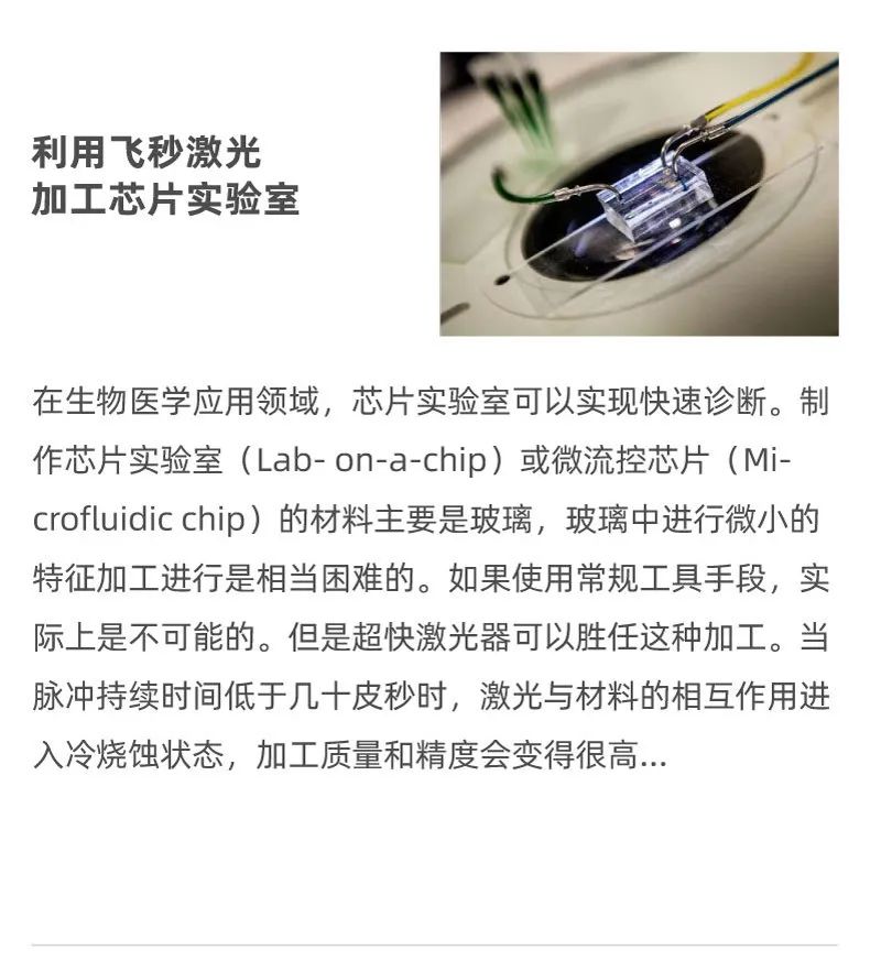在醫(yī)學(xué)上,飛秒激光被用于眼科手術(shù),如治療近視和白內(nèi)障,以及皮膚治療。由于其精確的切割和組織移除能力,它在醫(yī)學(xué)領(lǐng)域具有巨大潛力。另外在光譜學(xué)研究、時(shí)間分辨成像、以及基礎(chǔ)研究中也均有身影。飛秒激光的廣泛應(yīng)用使其成為物理學(xué)、化學(xué)、材料科學(xué)和生物醫(yī)學(xué)等多個(gè)領(lǐng)域的重要工具。