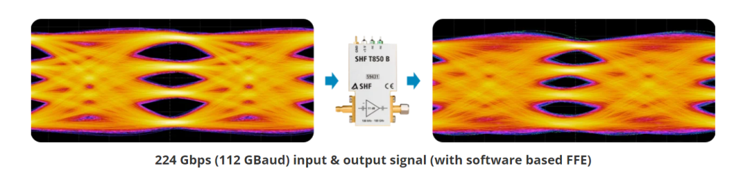 SHF T850B可支持最高112GBaud PAM4信號的放大,其實(shí)測效果圖如下: