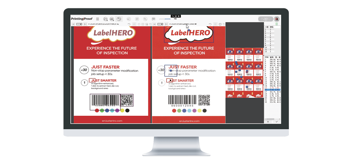 可以識別電子文件與電子文件、電子文件與印刷樣、印刷樣與印刷樣之間的差異,識別印刷中常見的套印不準(zhǔn)、陷印漏白、臟污、缺損以及文字/圖形/圖像錯誤等缺陷,可應(yīng)用在印刷全流程中大版校對、簽首樣、印刷抽檢等環(huán)節(jié)。