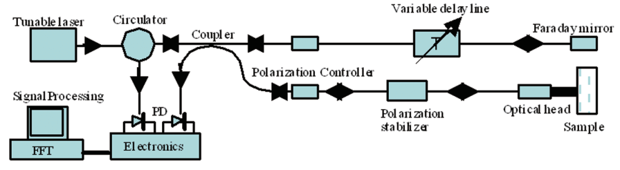 一個(gè)典型的SS-OCT系統(tǒng)如下圖所示:
