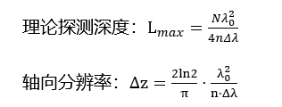 光源帶寬:光源帶寬既影響理論掃描深度也影響軸向分辨率,大的光源帶寬帶來高軸向分辨率及短的掃描深度,反之亦然